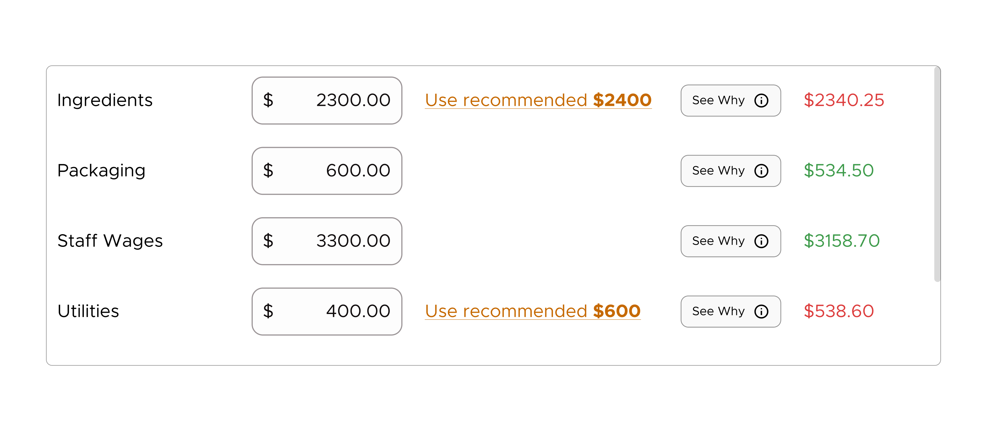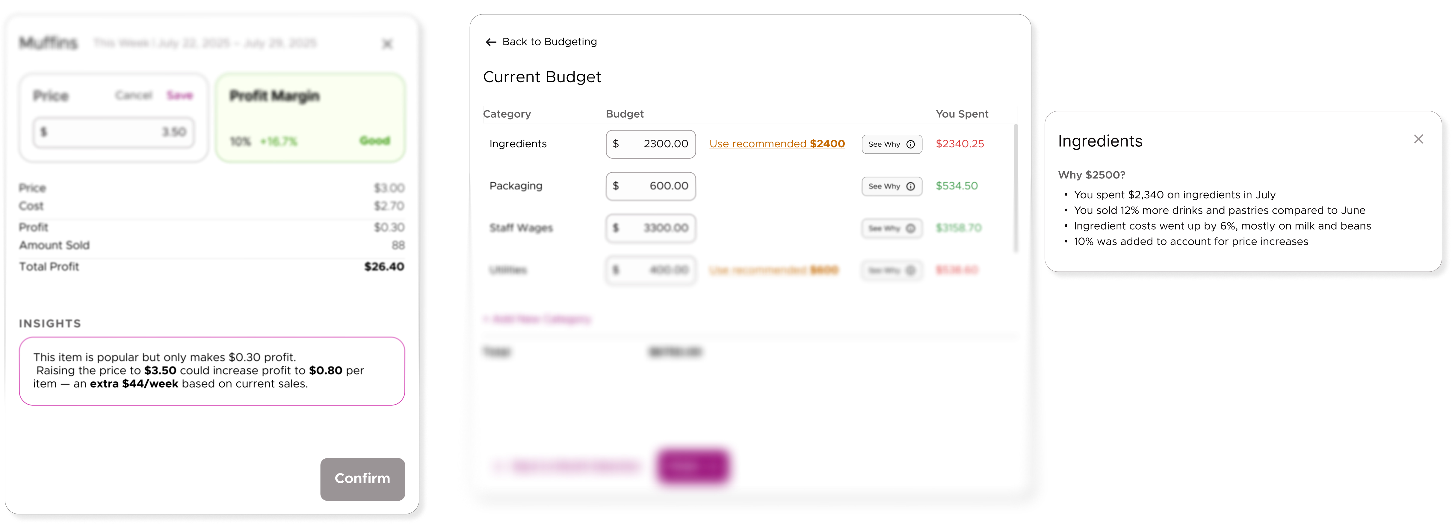 Designed recommendations to be directly actionable by pairing AI insights with immediate financial impact and inline rationale, so users can move from insight to decision without leaving context.