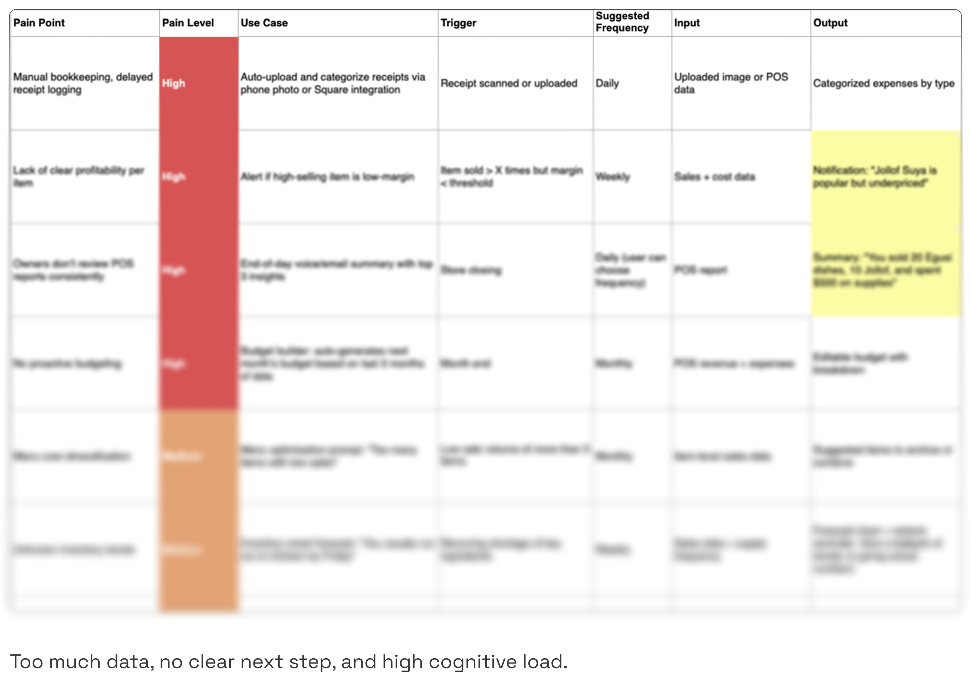 Small business owners struggled to understand AI-driven insights due to complex language, rigid dashboards, and low adaptability to their context.