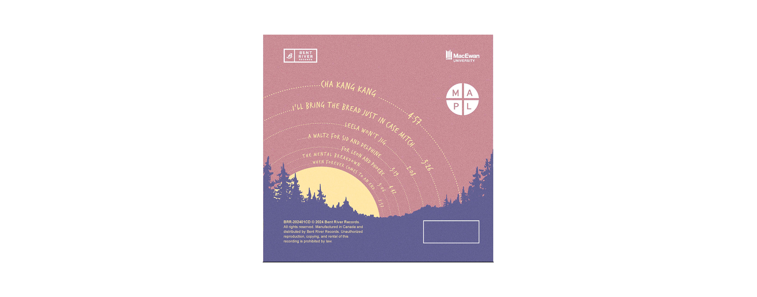 The back cover presents the tracklist arranged in a subtle arc, visually echoing the setting sun motif while balancing readability with narrative symbolism.