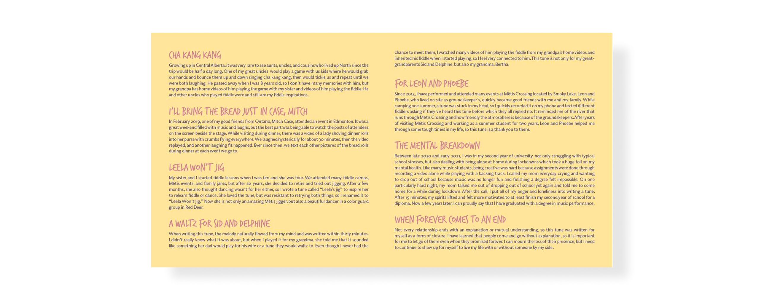 The liner notes feature Brianna Lizotte’s own written reflections for each song, pairing her storytelling with warm typography and layout to deepen the listener’s connection to the music.